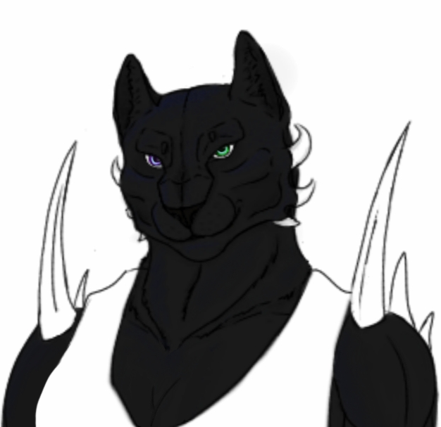 А вот белоснежные шипы на скулах, локтях рук и хвостовой шип, похожий на заточенный с обоих сторон серп, сохраняются в этой форме почти постоянно – спать привычнее все же на целой подушке, а хвост тоже может уставать от боевого украшения. Сами пальцы рук, кстати, практически не меняются – разве что покрываются шерстью и получают когти вместо ногтей, в отличие от ног, получающих гораздо более яркие звериные формы – мощные бедра и голени, а также стопы, оканчивающиеся совершенно звериными лапами.